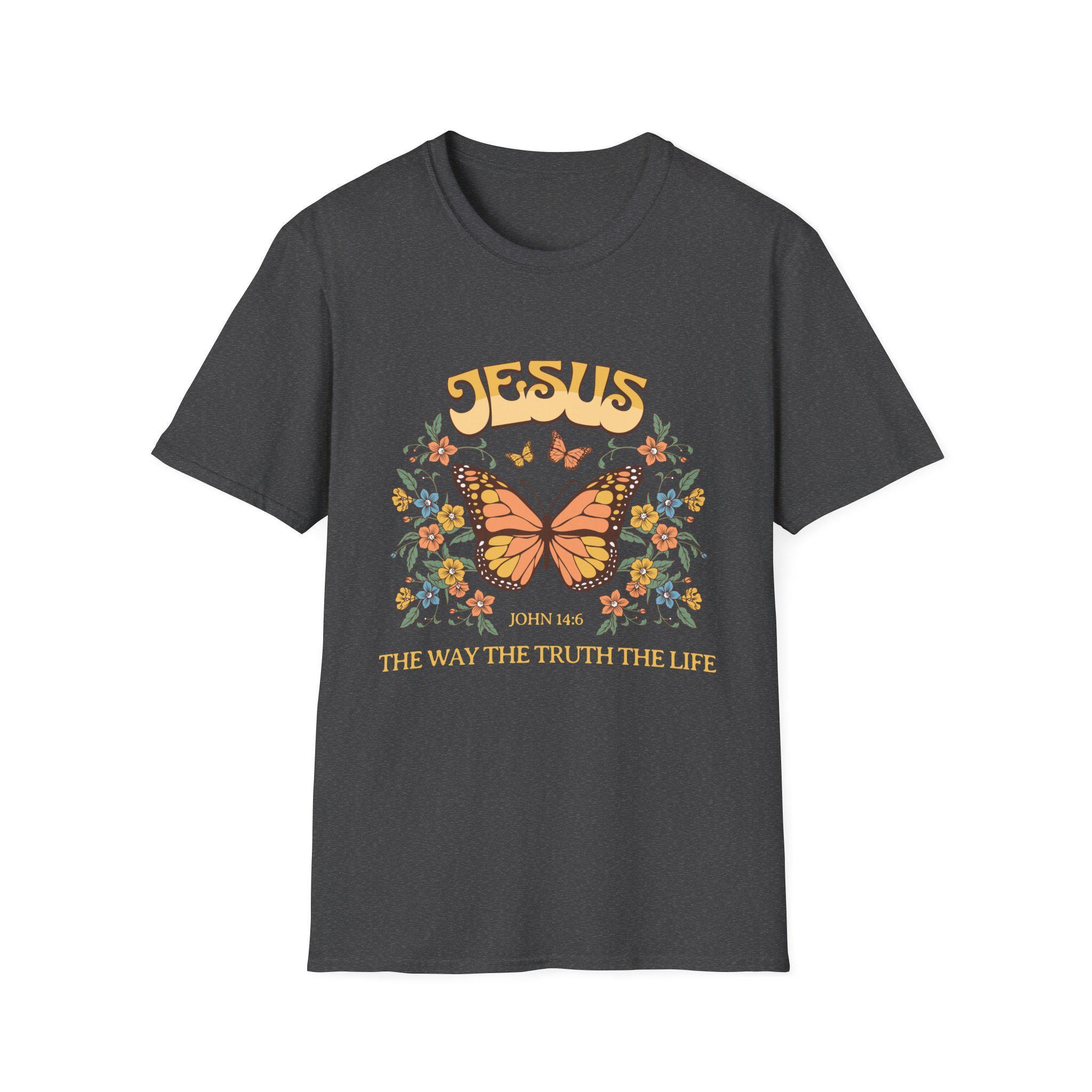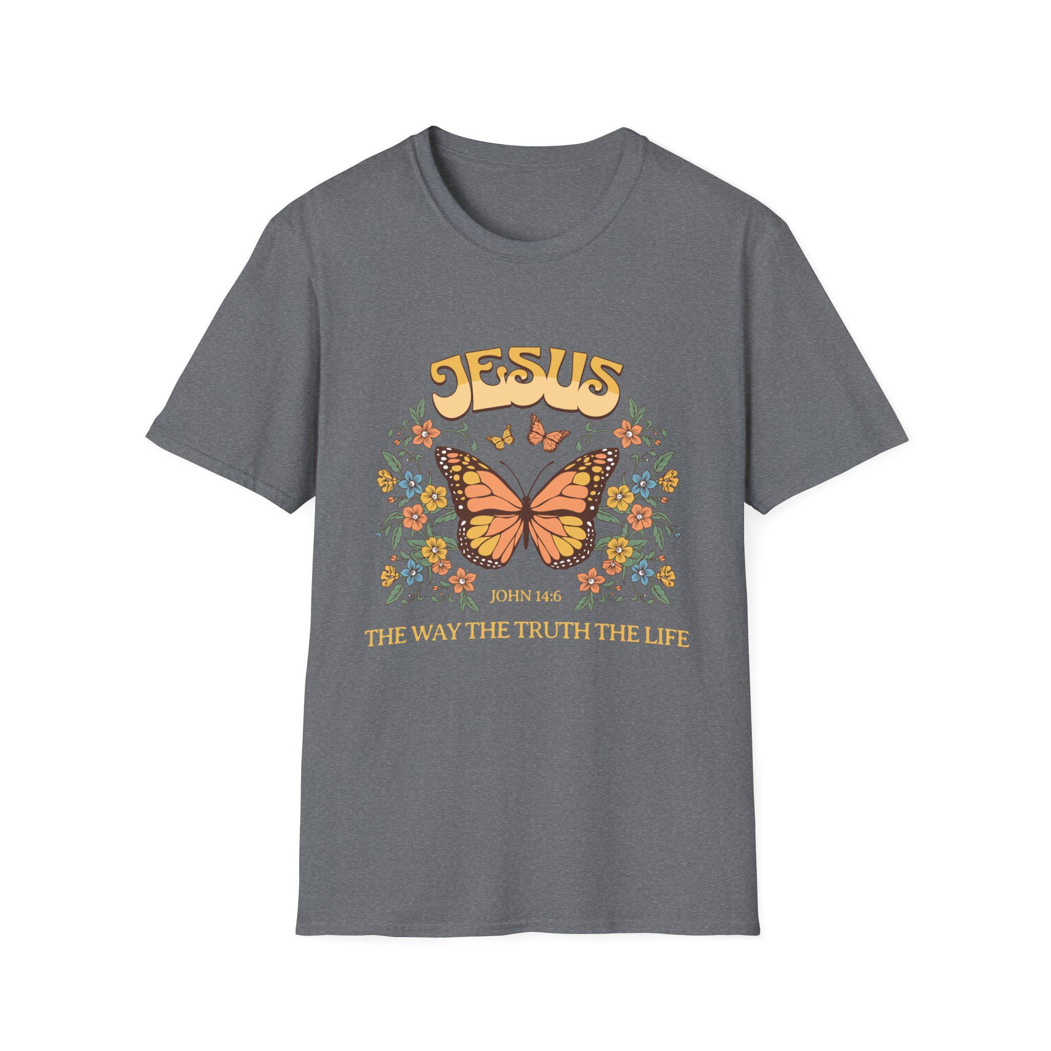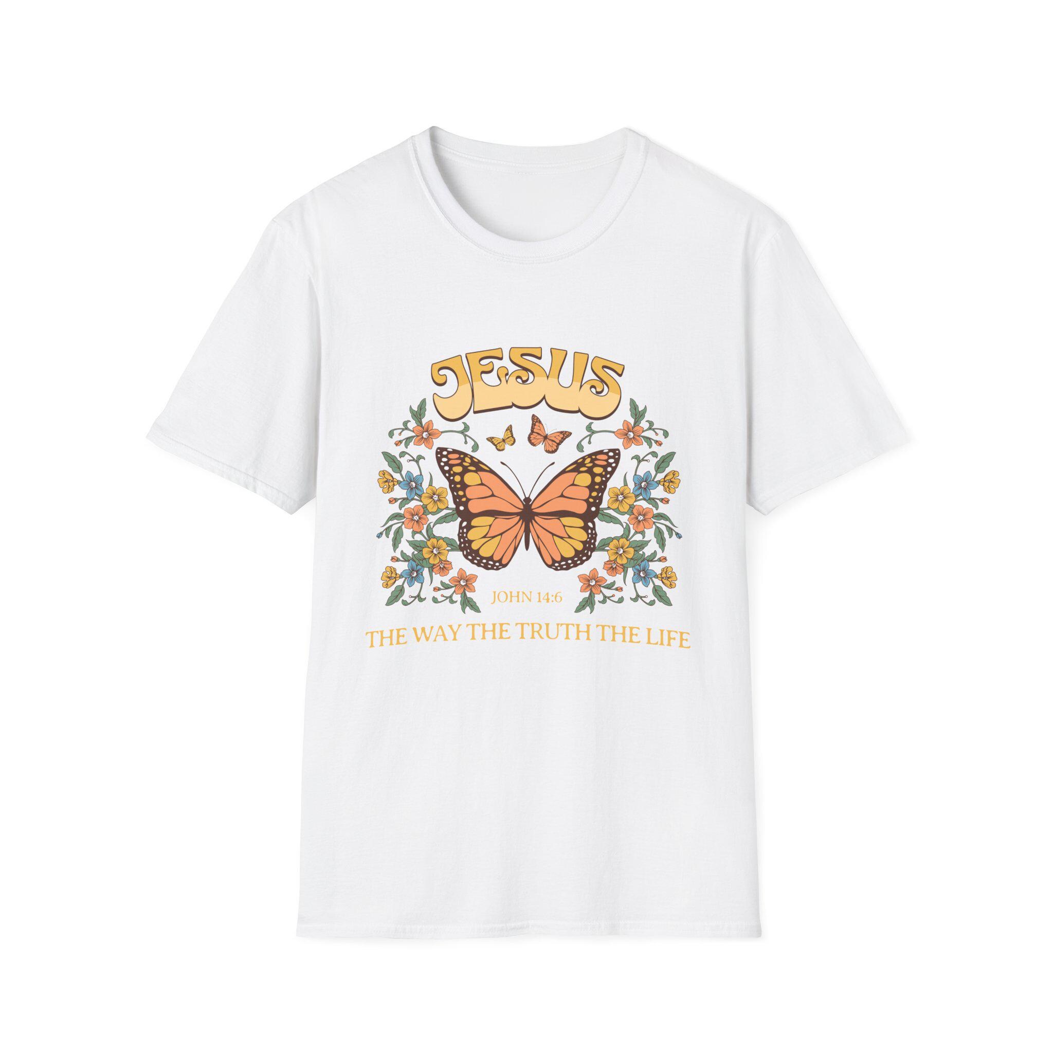 Butterfly Jesus Softstyle T-Shirt, Faith Apparel, Christian Gifts, Inspirational Tees, Vintage Graphic Shirt