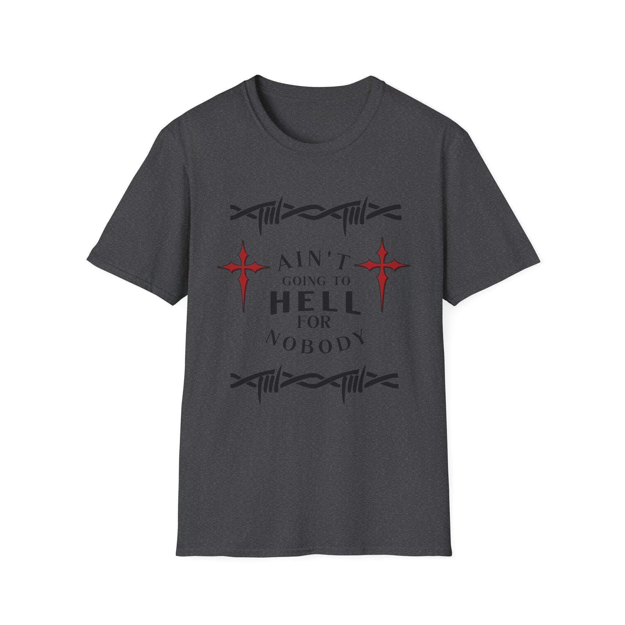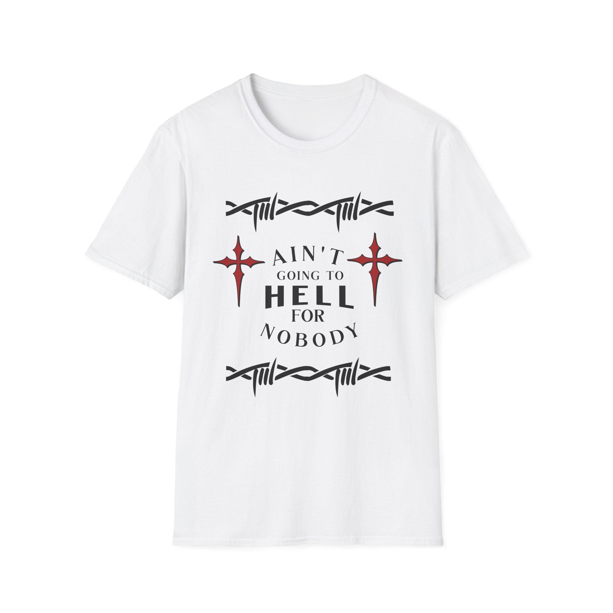 Bold Graphic T-Shirt with Inspirational Quote, Ain't Going to Hell, Unisex Softstyle Tee, Casual Wear, Gift for Friends, Everyday